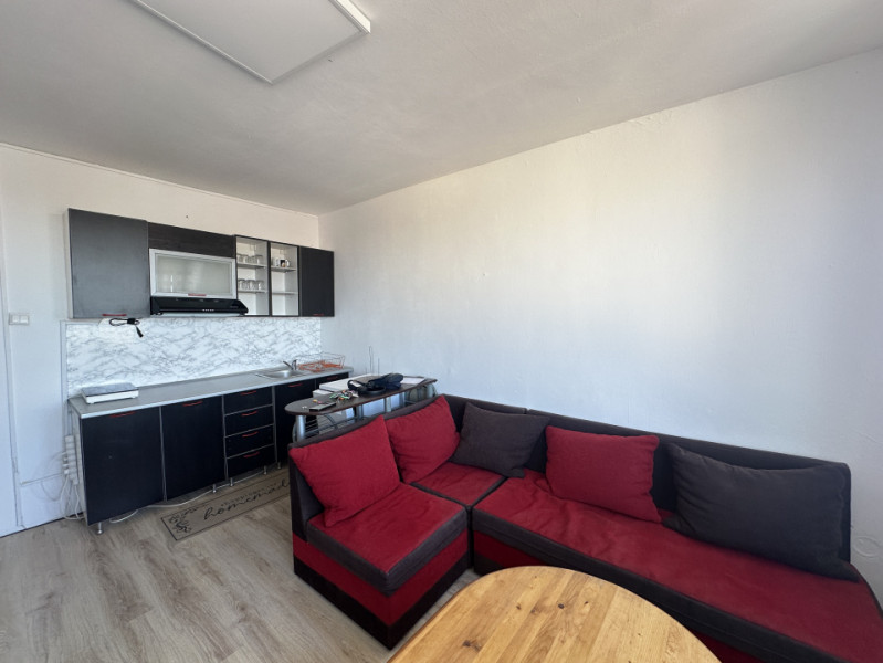 Este un apartament cu 2 camere, transformat în 3, astfel că livingul este open-space cu bucătăria. Dispune de toate electrocasnicele necesare: cuptor electric, plită, cuptor cu microunde, frigider, mașină de spălat vase, aer condiționat și hotă.