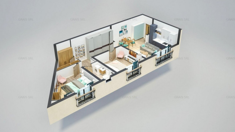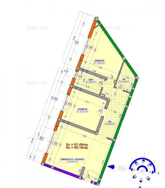 Apartamentul G5 - etaj 1/ G9 - etaj 2 are o suprafata utila de aprox 68mp si este compus din 3 camere compartimentate astfel: