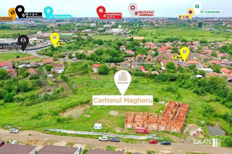 Parte din zona Plopi-Timisoara, Cartier Magheru pune accentul pe dezvoltarea unei comunitati cu aceleasi valori ca ale tale, astfel ca in cadrul acestuia construim apartamente (2,3 si 4 camere), zona de duplexuri (P+M, P+1), zona de servicii/retail, parc de 2500 mp cu loc de joaca pentru copii, piscina si un bar de zi, exclusiv pentru locatarii cartierului.